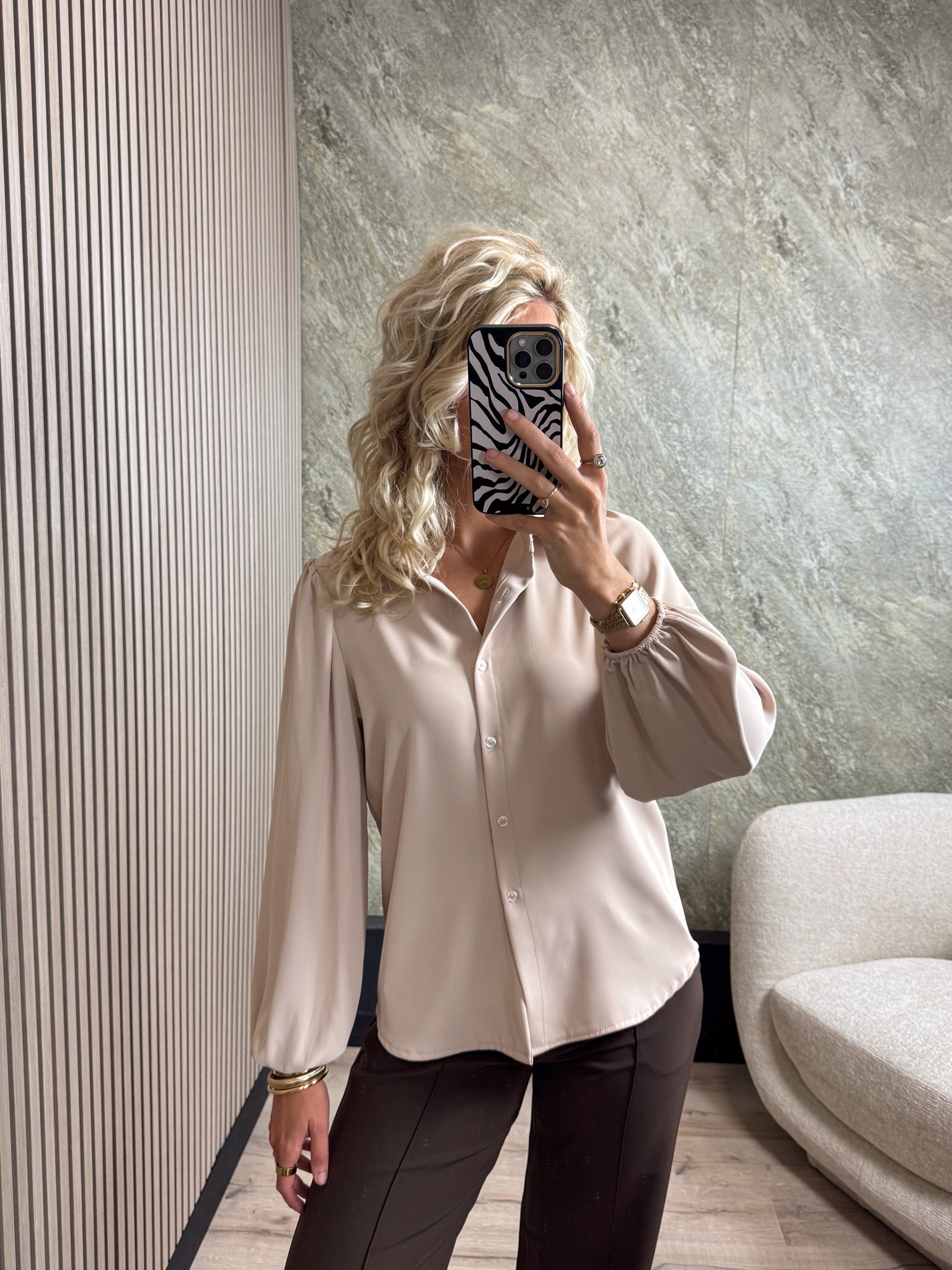 Deze prachtige blouse is een echte musthave voor dit najaar. Met iets wijdere mouwen en een mooie knoopsluiting is het de perfecte basic die stijl en comfort combineert.