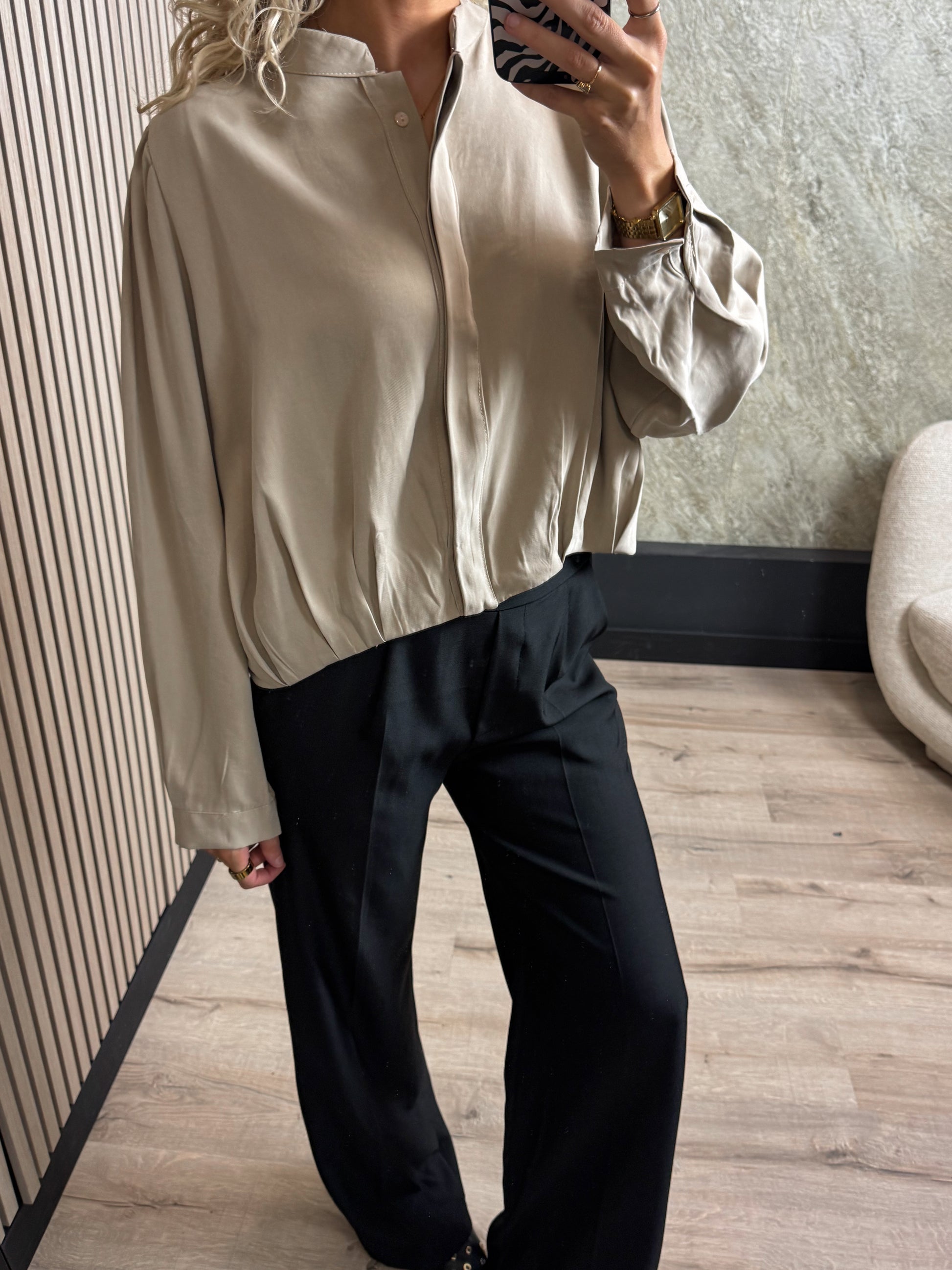 Deze prachtige blouse is een echte musthave voor dit najaar! Het model heeft elegante, wijde pofmouwen en een knoopsluiting. Extra leuk: je kunt de blouse ook als jasje dragen.
