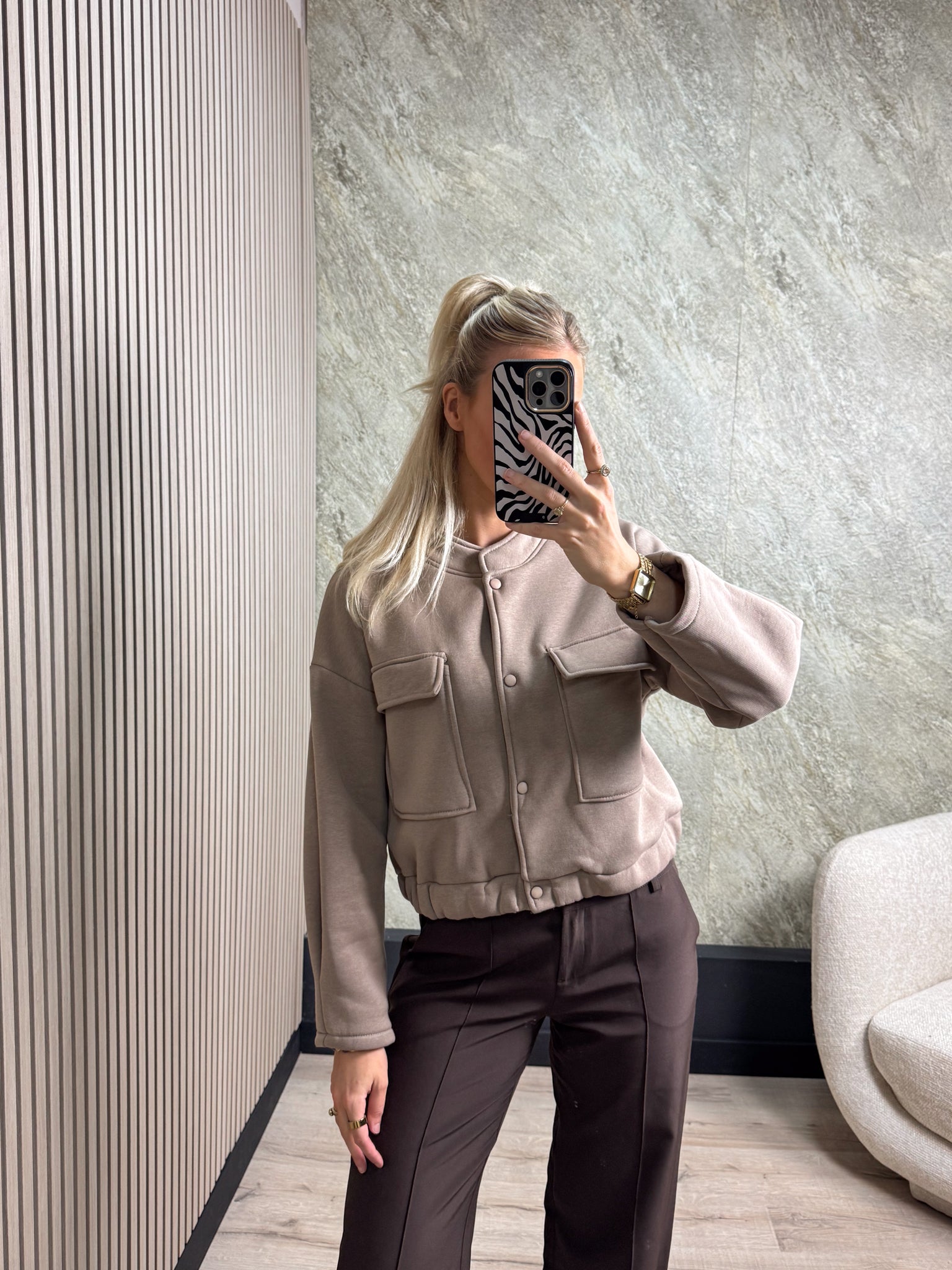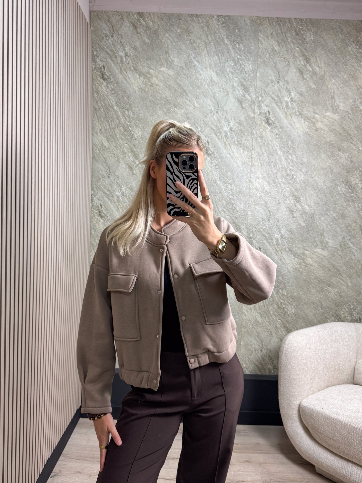 Deze trendy bomberjack is een echte musthave voor elk seizoen! Het jasje heeft een handige drukknoopsluiting, een comfortabele elastische band aan de onderkant en twee stijlvolle zakken aan de voorkant.