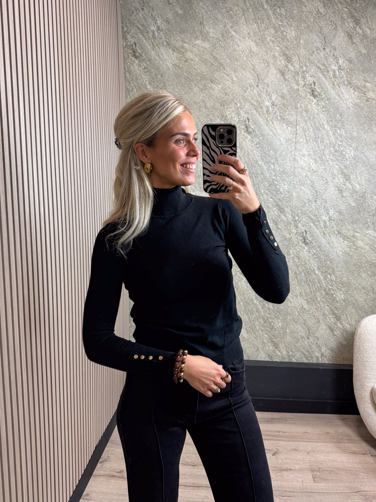 Deze coltrui is een must-have voor dit najaar. Een perfecte basic die je met alles kunt combineren. De coltrui heeft prachtige gouden knopen bij de mouwen.