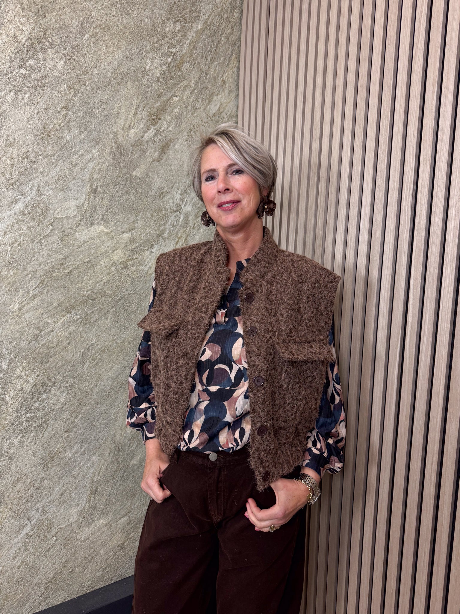 Het gilet is dé must-have van dit seizoen! Het heeft een trendy harige structuur, twee handige zakjes aan de voorkant en een stijlvolle knoopsluiting. Dankzij de elastieken band aan de onderkant zit het gilet altijd mooi aangesloten.