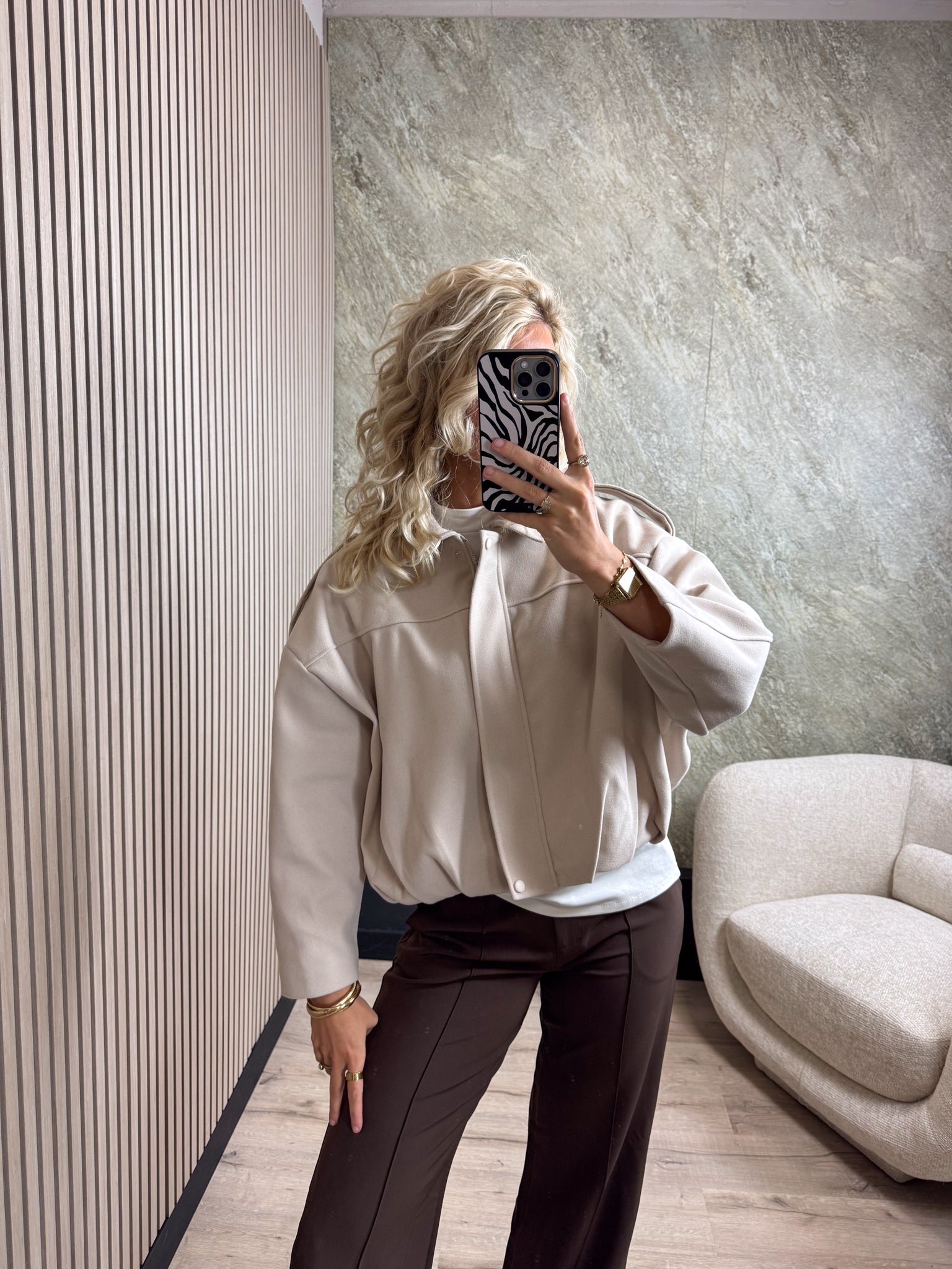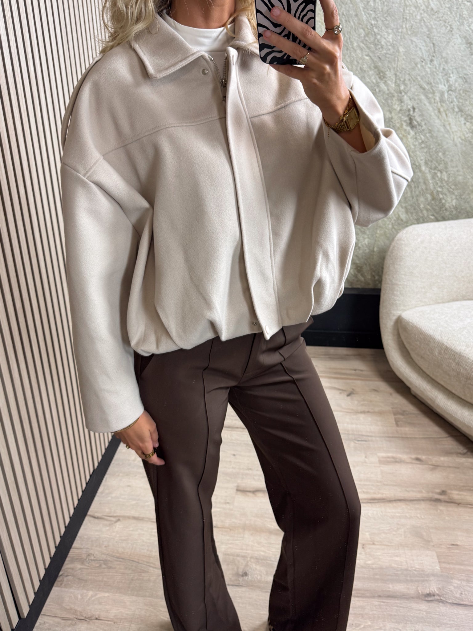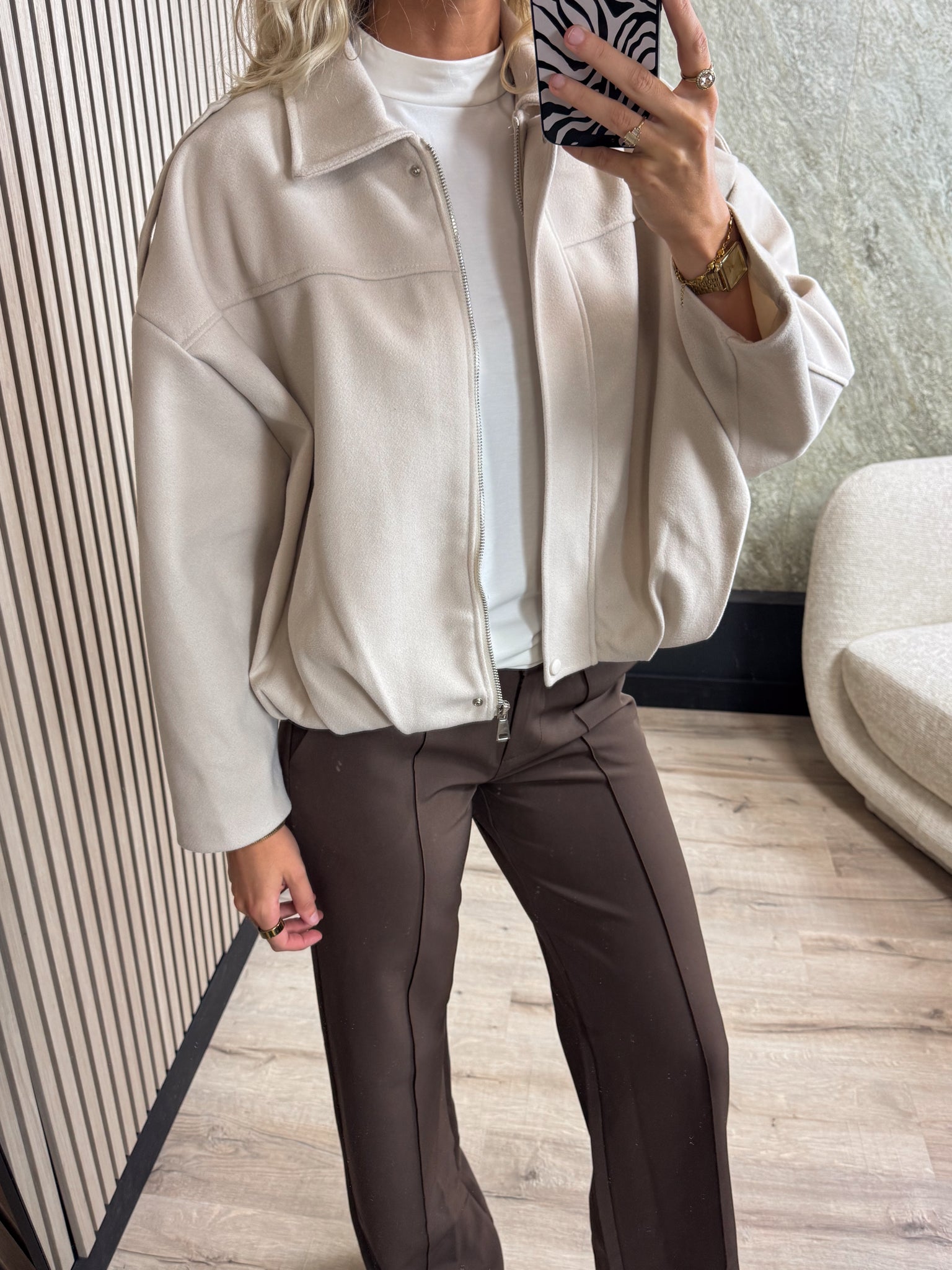 Dit jasje is echt een musthave voor dit najaar! Het jasje heeft mooie details, een ritssluiting en een elastieken onderkant wat een mooi effect geeft.