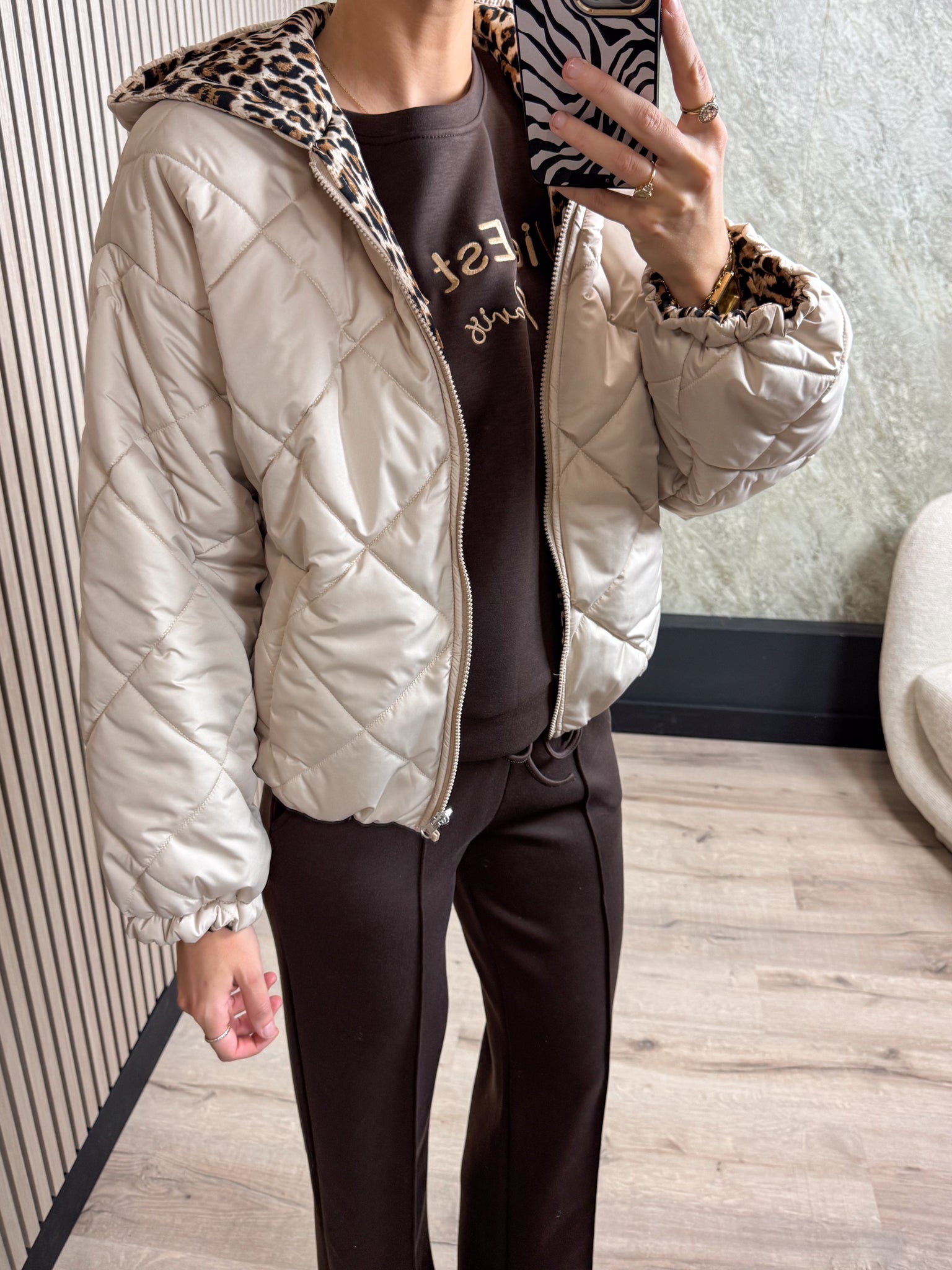 Deze reversible jas is dé musthave van dit seizoen! Je kunt hem aan twee kanten dragen — twee looks in één jas! En de mooie capuchon maakt het helemaal af.