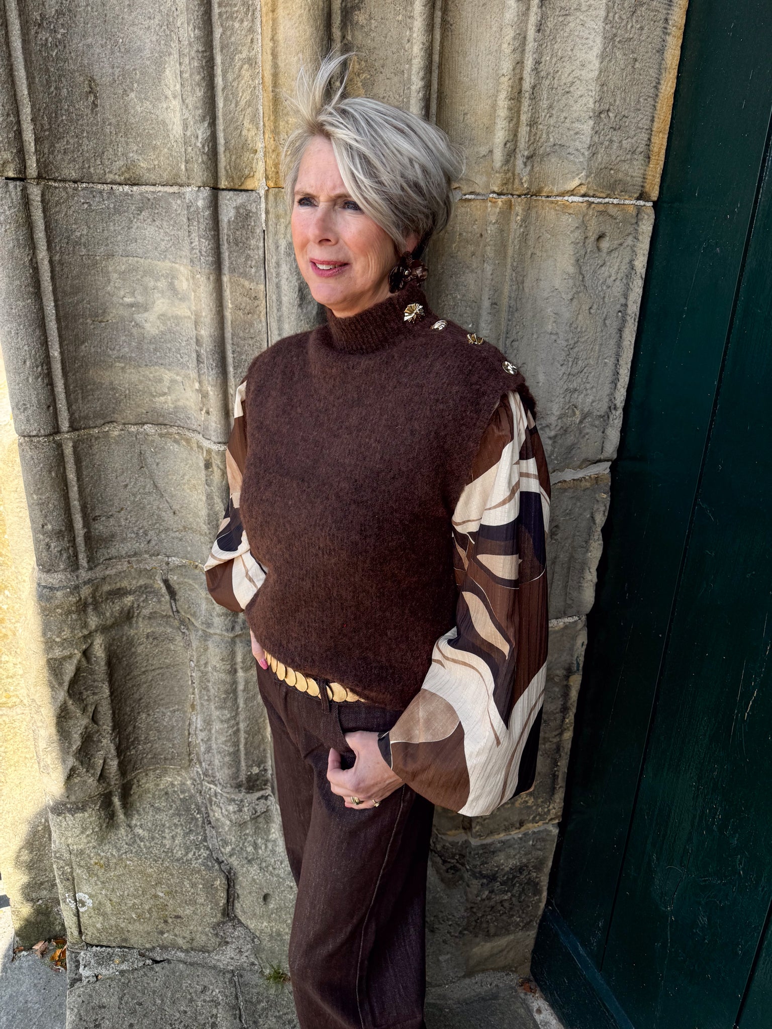 Een echte musthave! Deze spencer met elegante knopen bij de hals is perfect te combineren met een blouse of een basic top voor een trendy look.