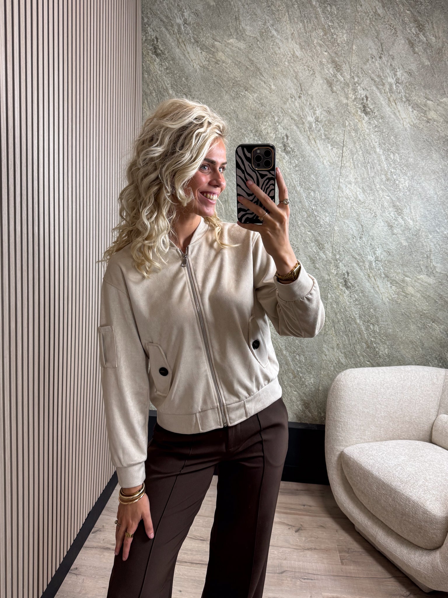 Dit jasje is een echte musthave! Het is gemaakt van mooie suèdelook stof en voorzien van een ritssluiting en twee zakjes aan de voorkant