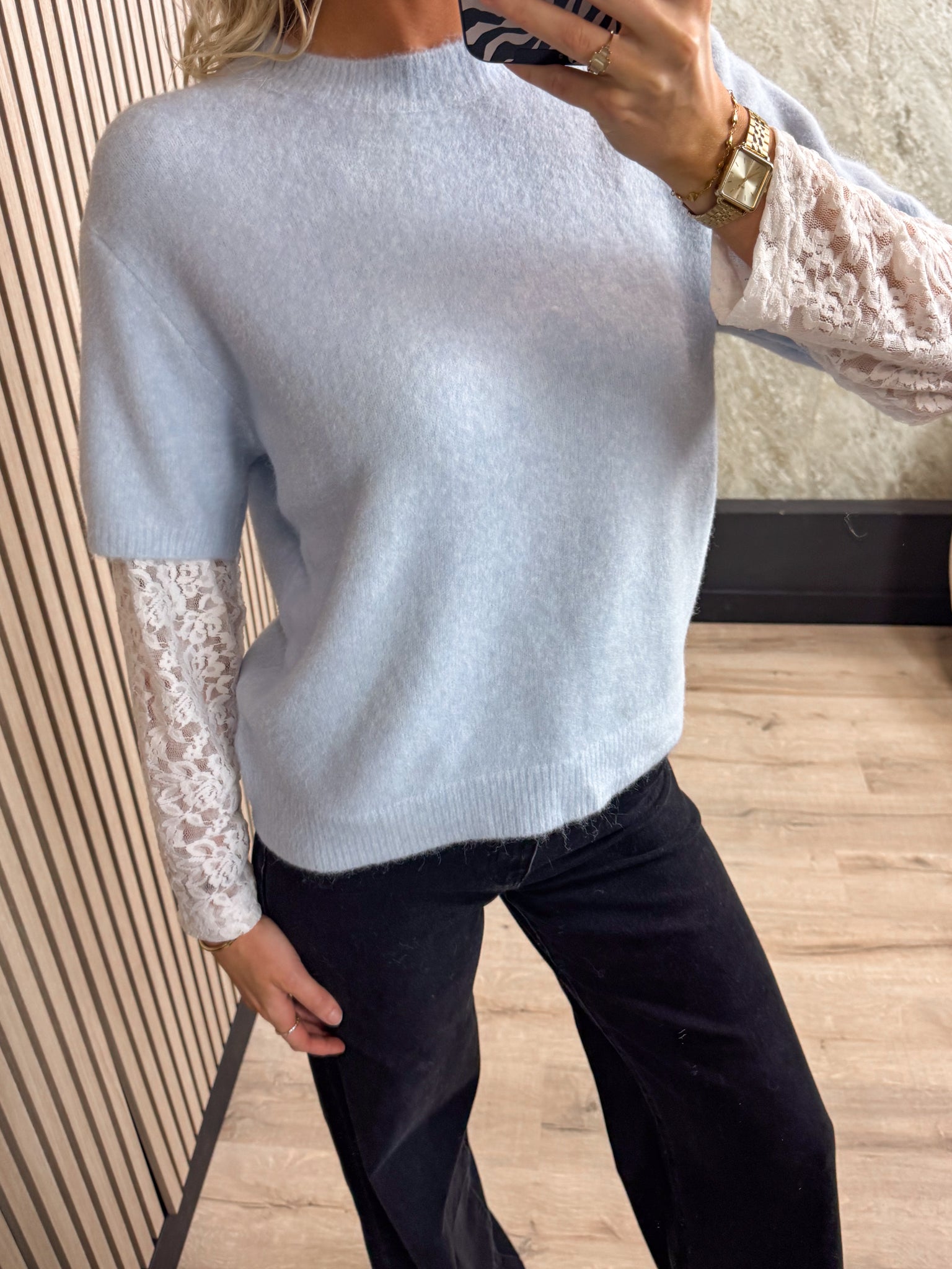 Deze top is een echte musthave! De top heeft een mooie kanten mouwen die eraan vast zitten, waardoor je eenvoudig een stijlvolle laagjeslook creëert.