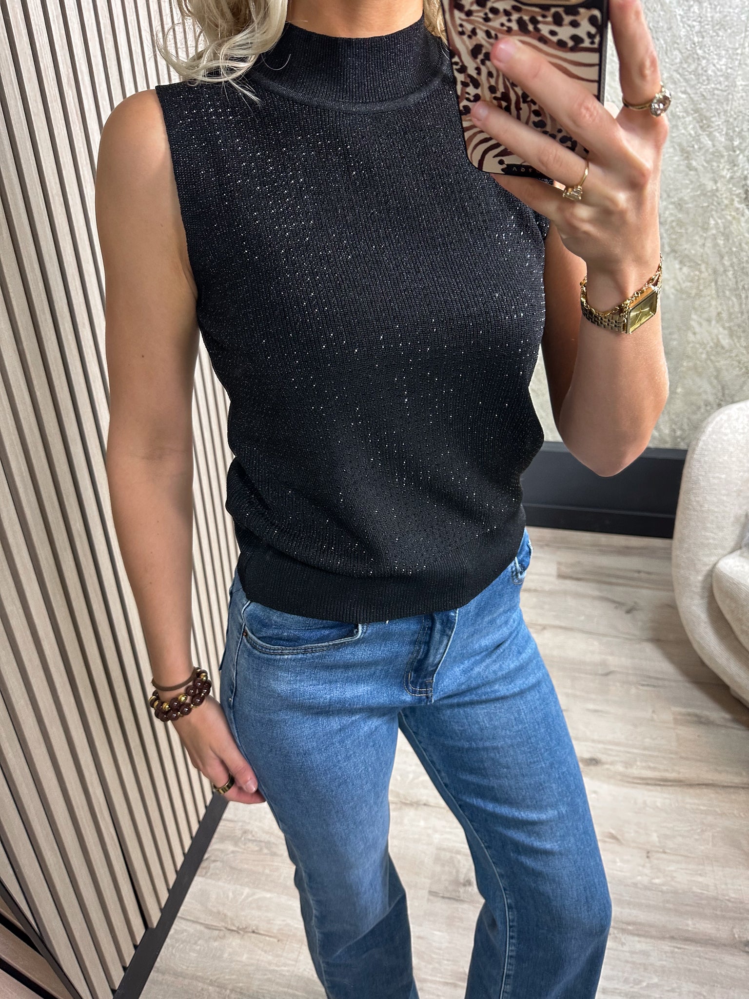 Deze top is een echte musthave. De top heeft een mooie ronde, hoge hals en sprankelende glitters.