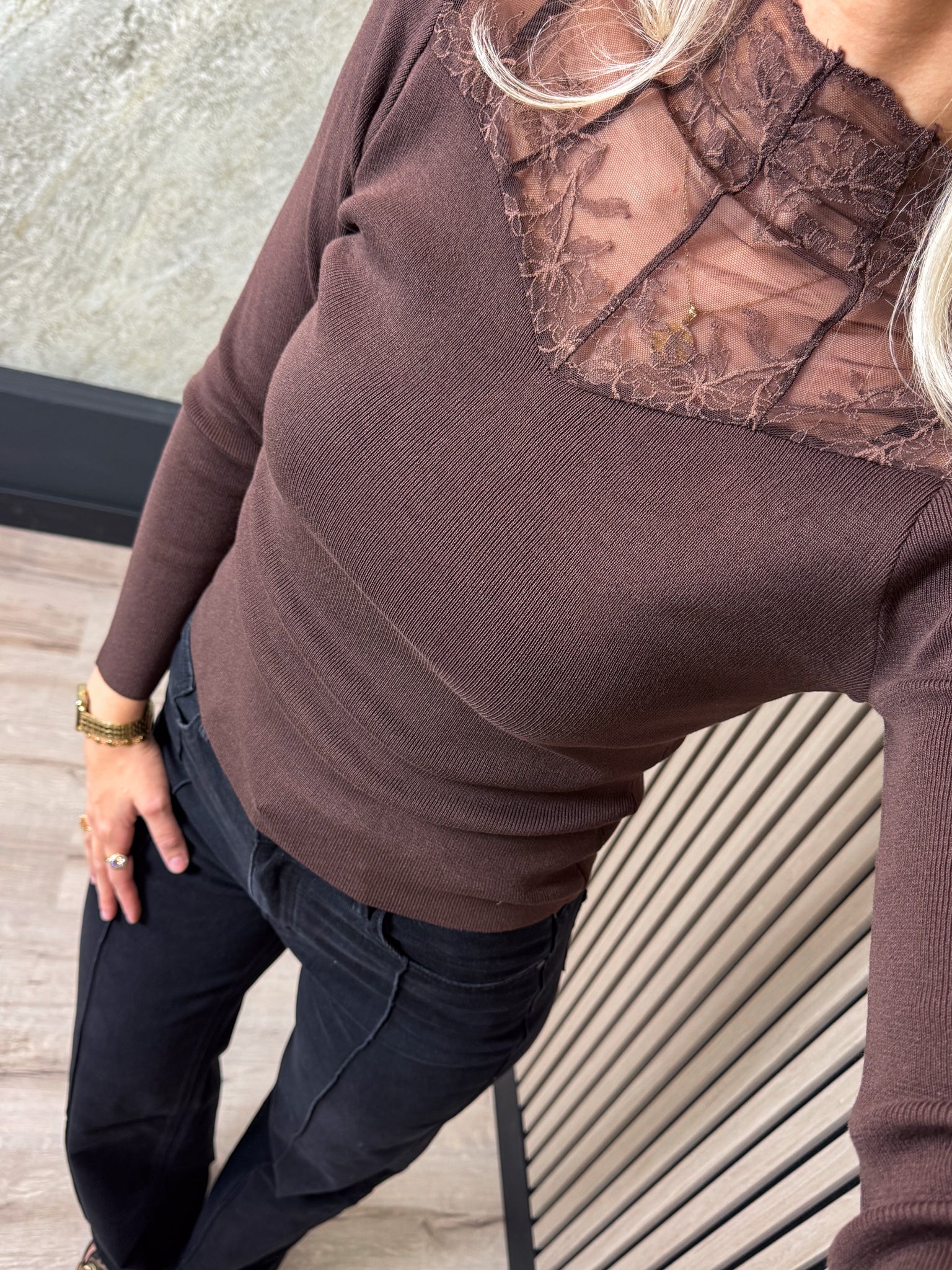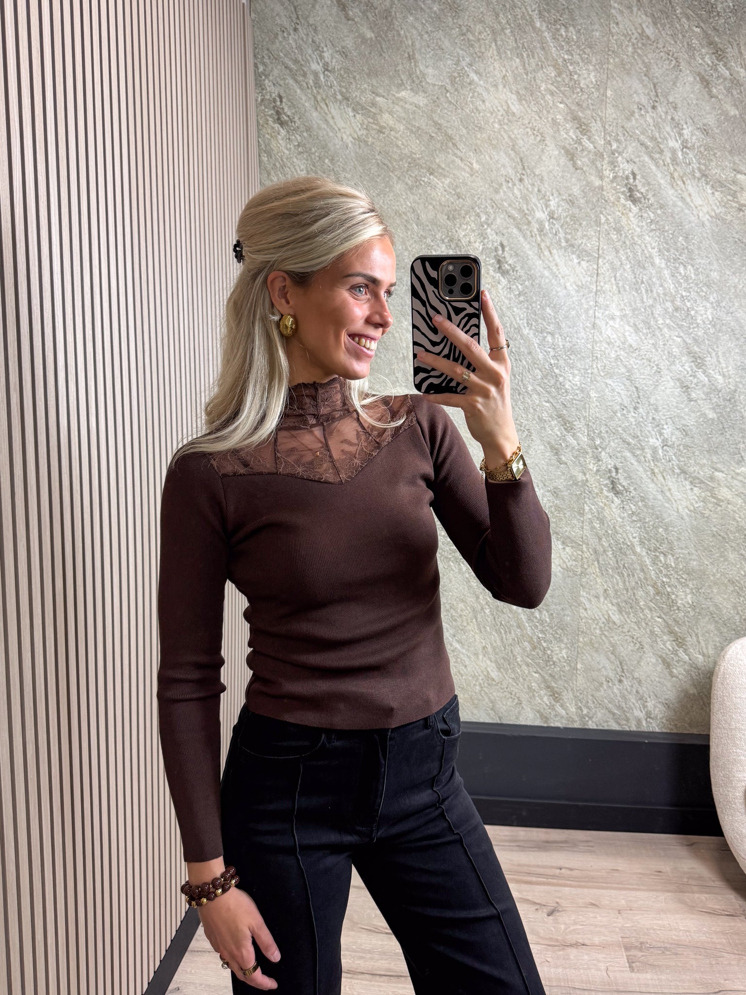 Deze top is een echte must-have. De top heeft een mooi gaasdetail aan de bovenkant en een hoge hals.