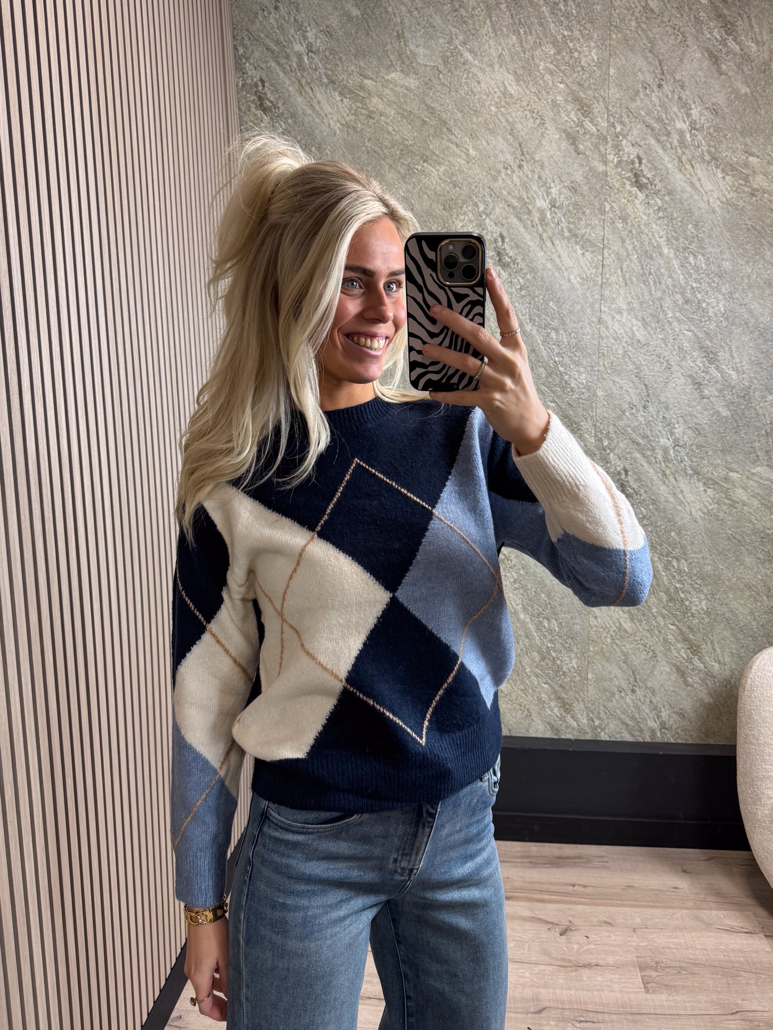 Deze trui is een echte musthave voor dit najaar! De trui heeft een stijlvolle ronde hals en een prachtige print.