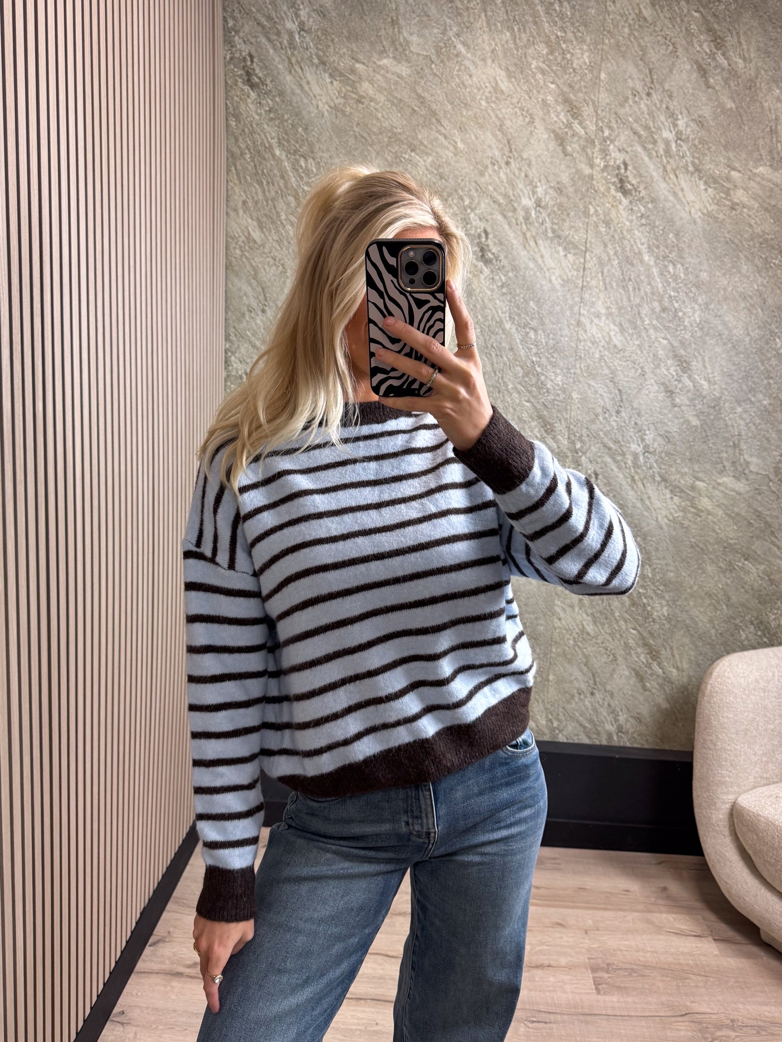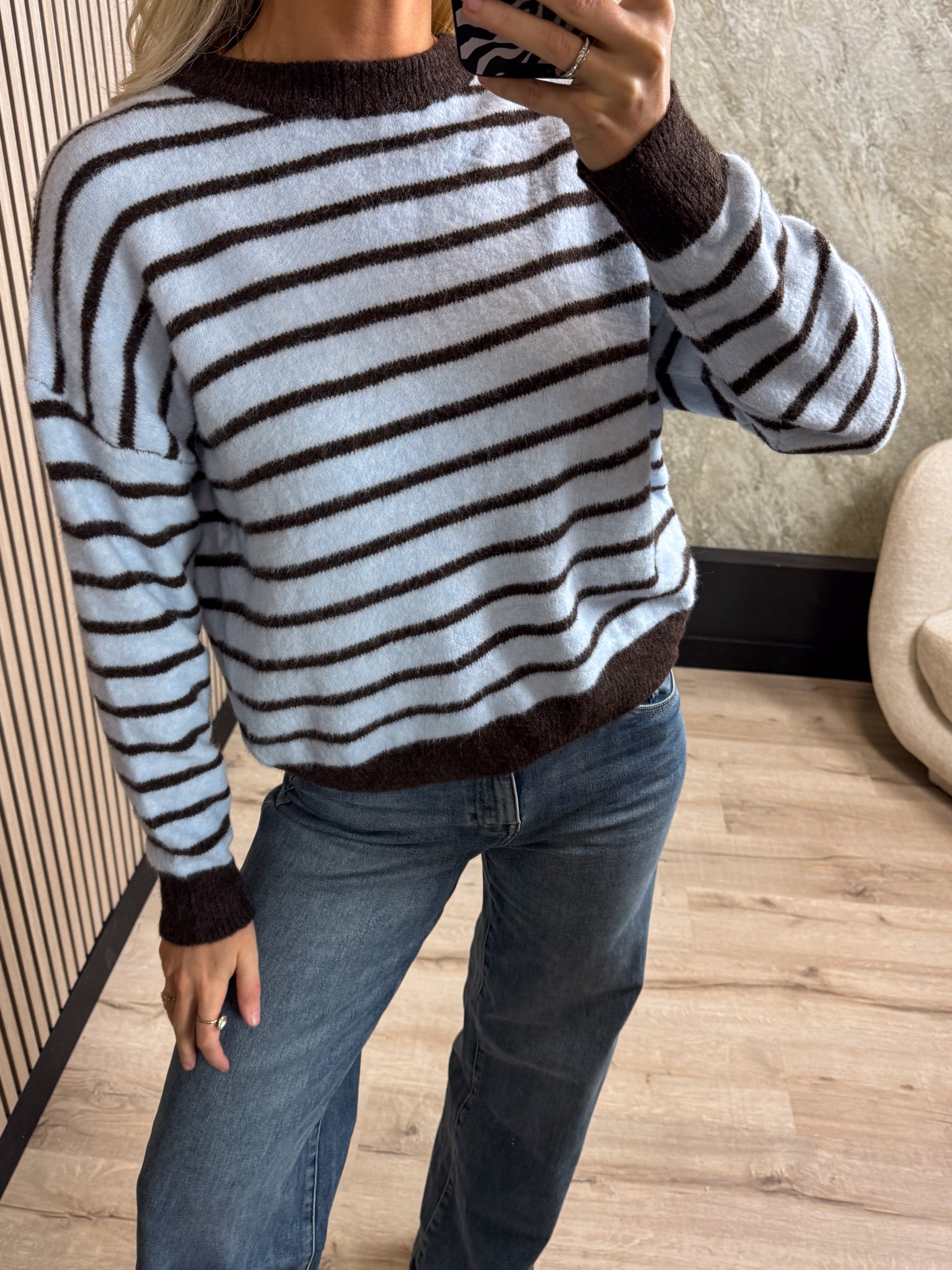 Deze trui is een echte musthave voor dit najaar! De trui heeft een stijlvolle ronde hals en een leuke strepen print.