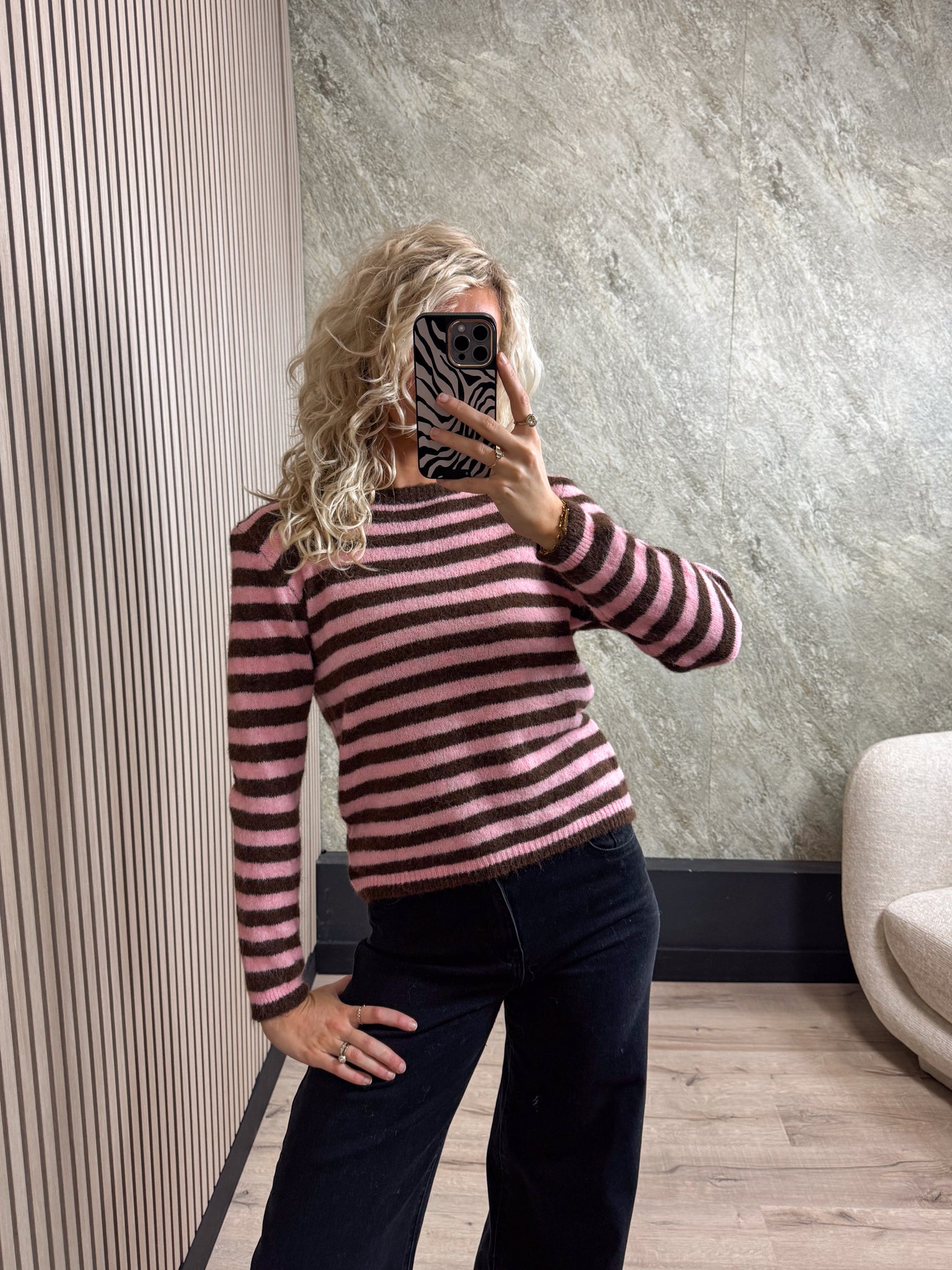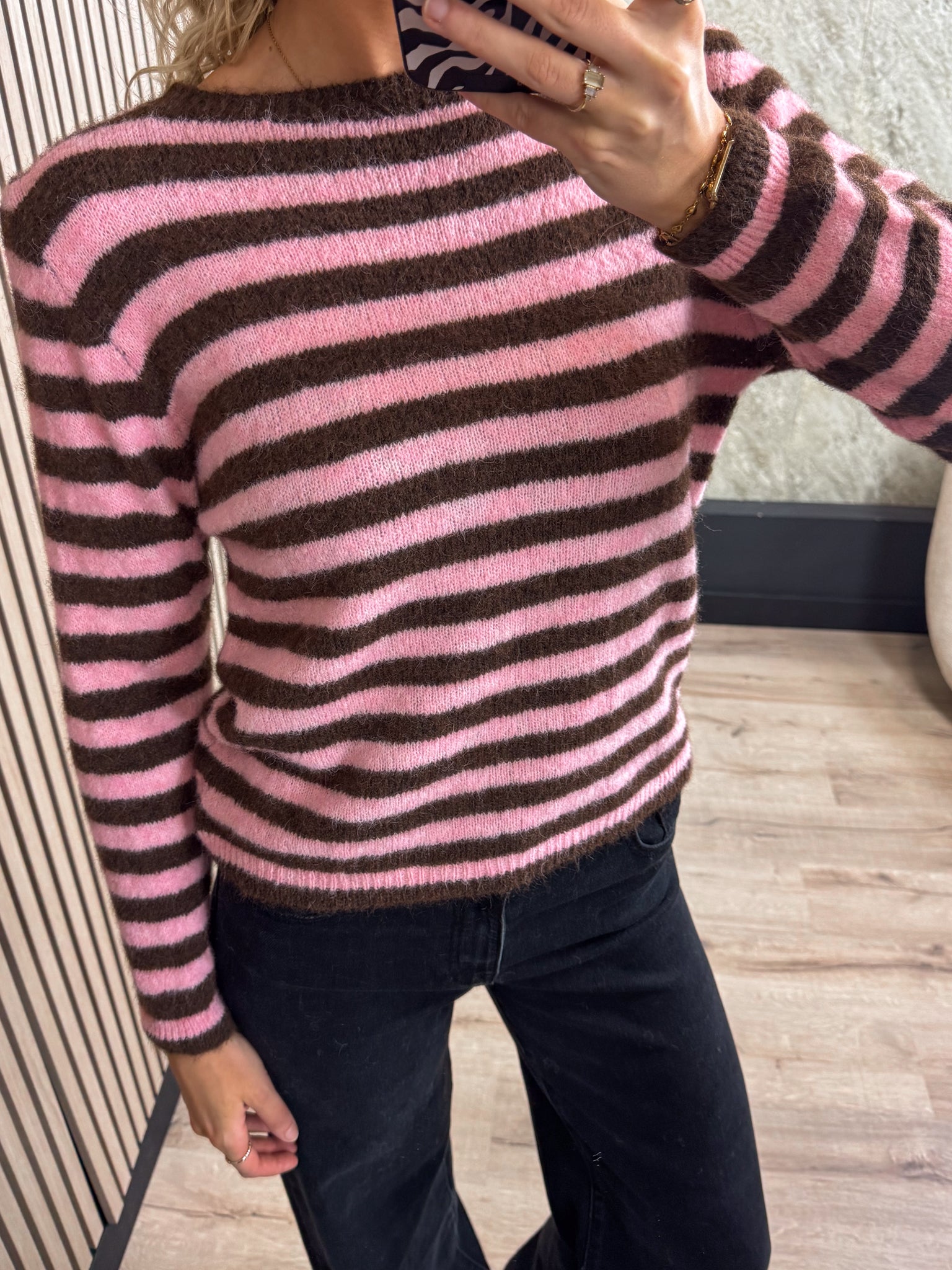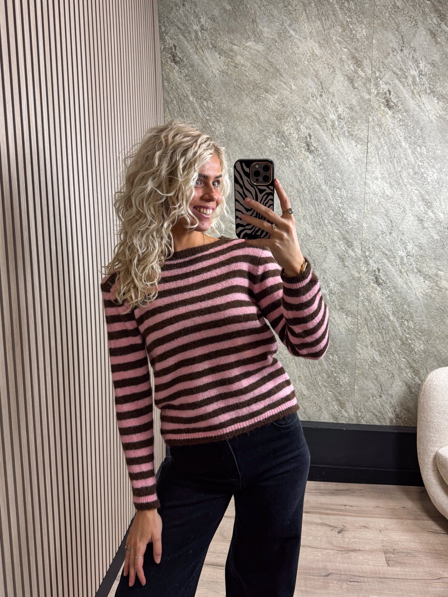 Deze trui is een echte musthave voor dit najaar! De trui heeft een stijlvolle ronde hals en een leuke strepen print.