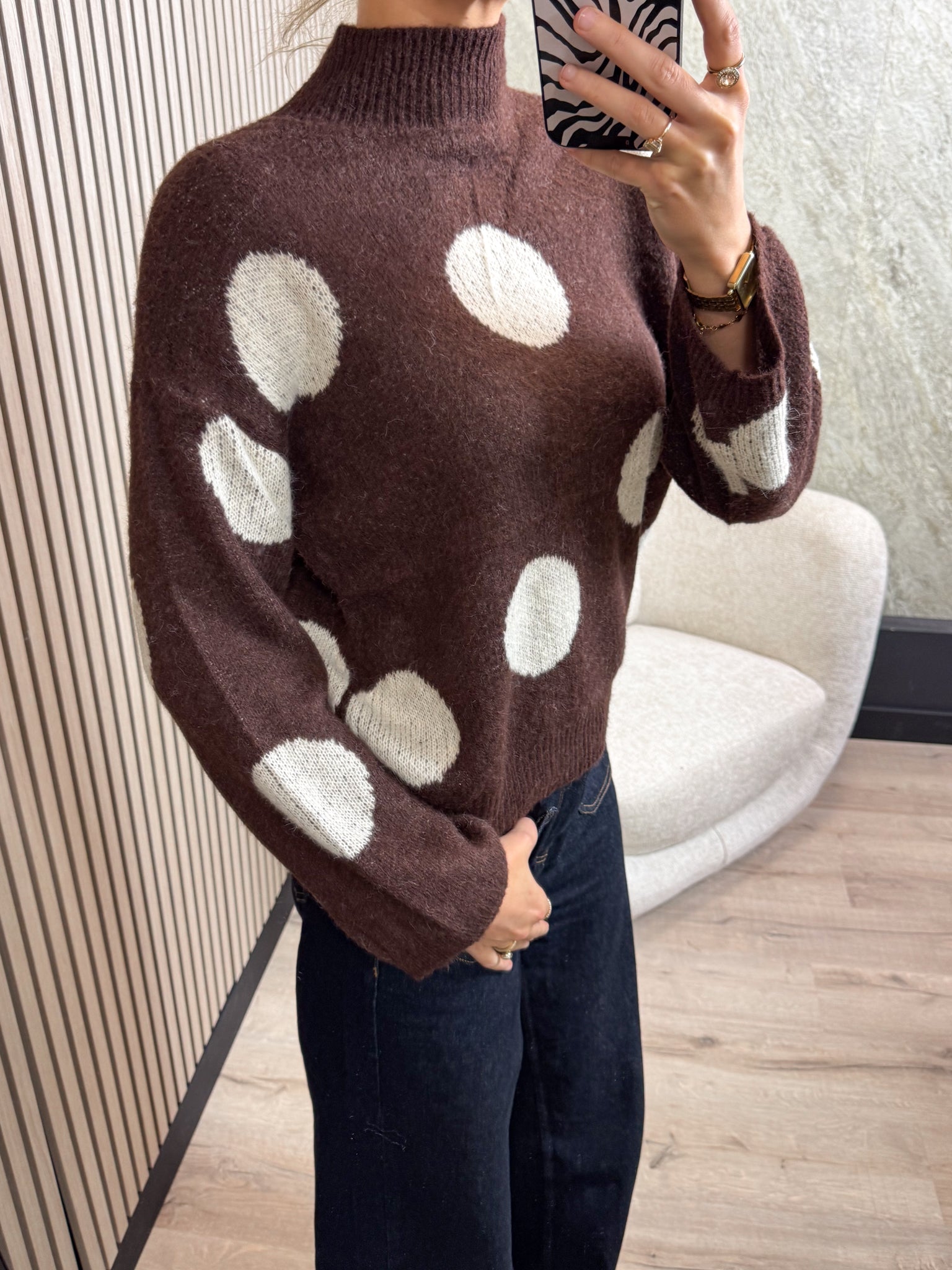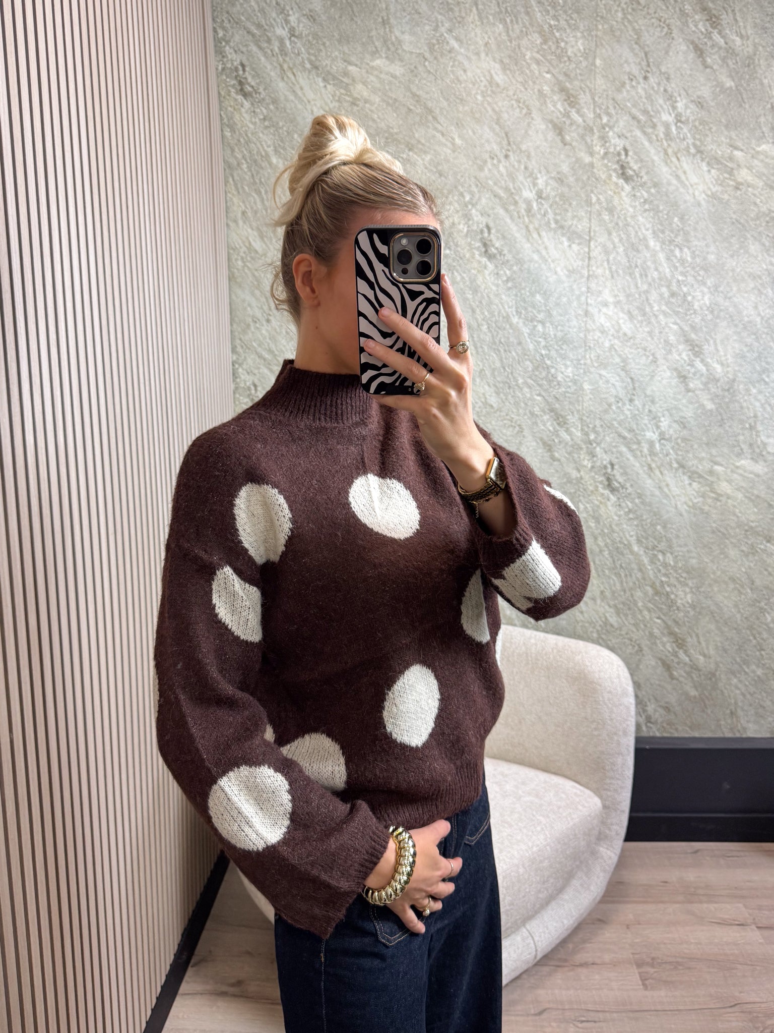 Deze trui is een echte musthave voor dit najaar! De zachte stof voelt heerlijk aan en de hoge hals geeft een stijlvolle touch. De leuke stippen maken de trui helemaal af.