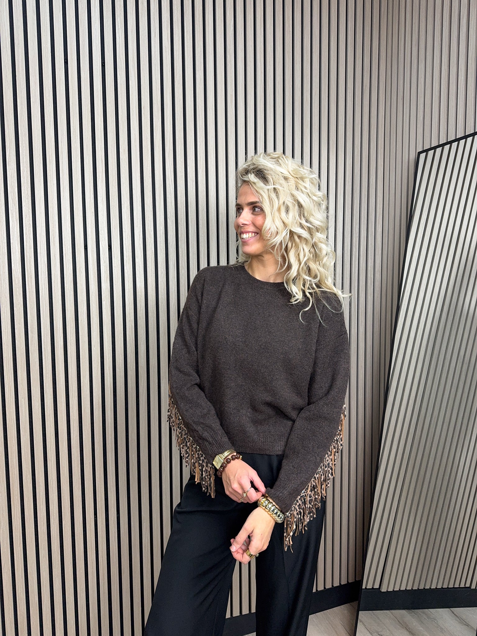 Deze trui is een echte musthave voor dit najaar. De franjes met panterprint en subtiele studs zorgen voor een trendy en unieke look.