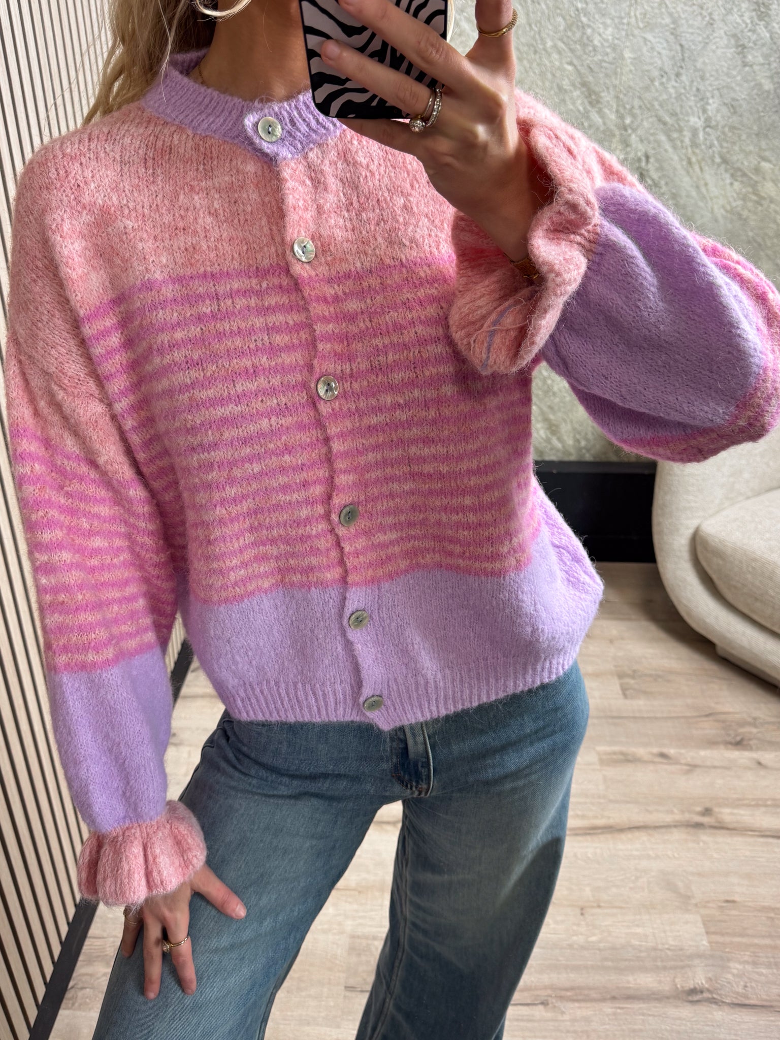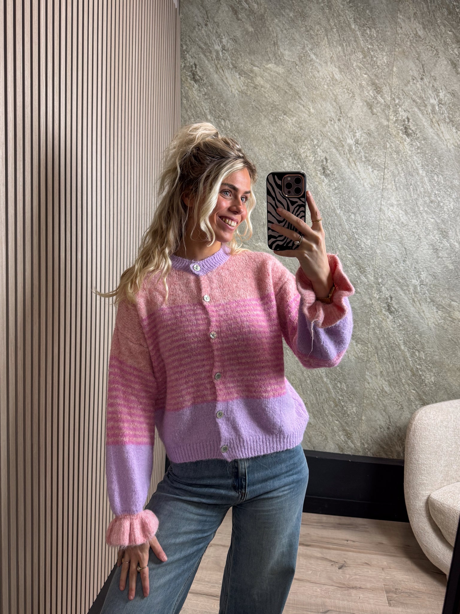 Dit vest is een echte eyecatcher, gemaakt van zachte stof met een leuke gekleurde print en afgewerkt met prachtige flared mouwen.
