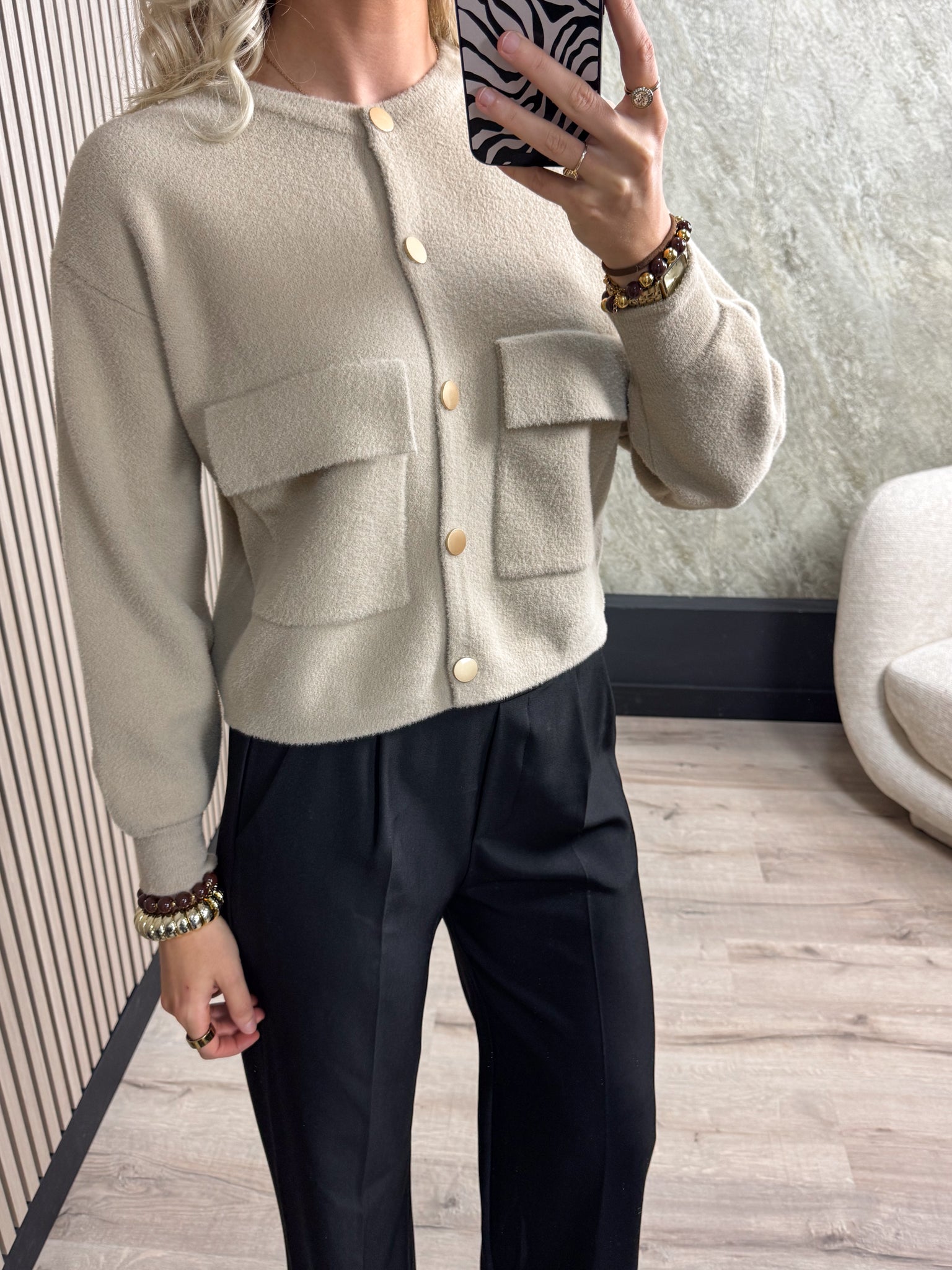 Dit vest is een echte eyecatcher. Het is gemaakt van een zachte, harige stof en heeft superleuke zakjes aan de voorkant en mooie gouden knopen.