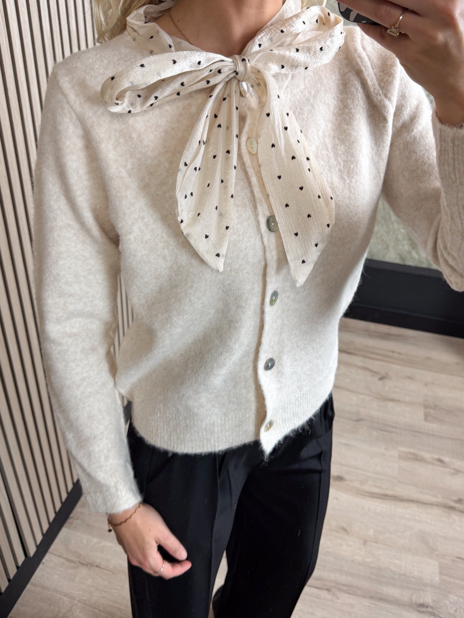Dit vest is een echte eyecatcher! Het is gemaakt van een heerlijk zachte stof en heeft aan de bovenkant een leuke strik met een schattige hartjesprint.