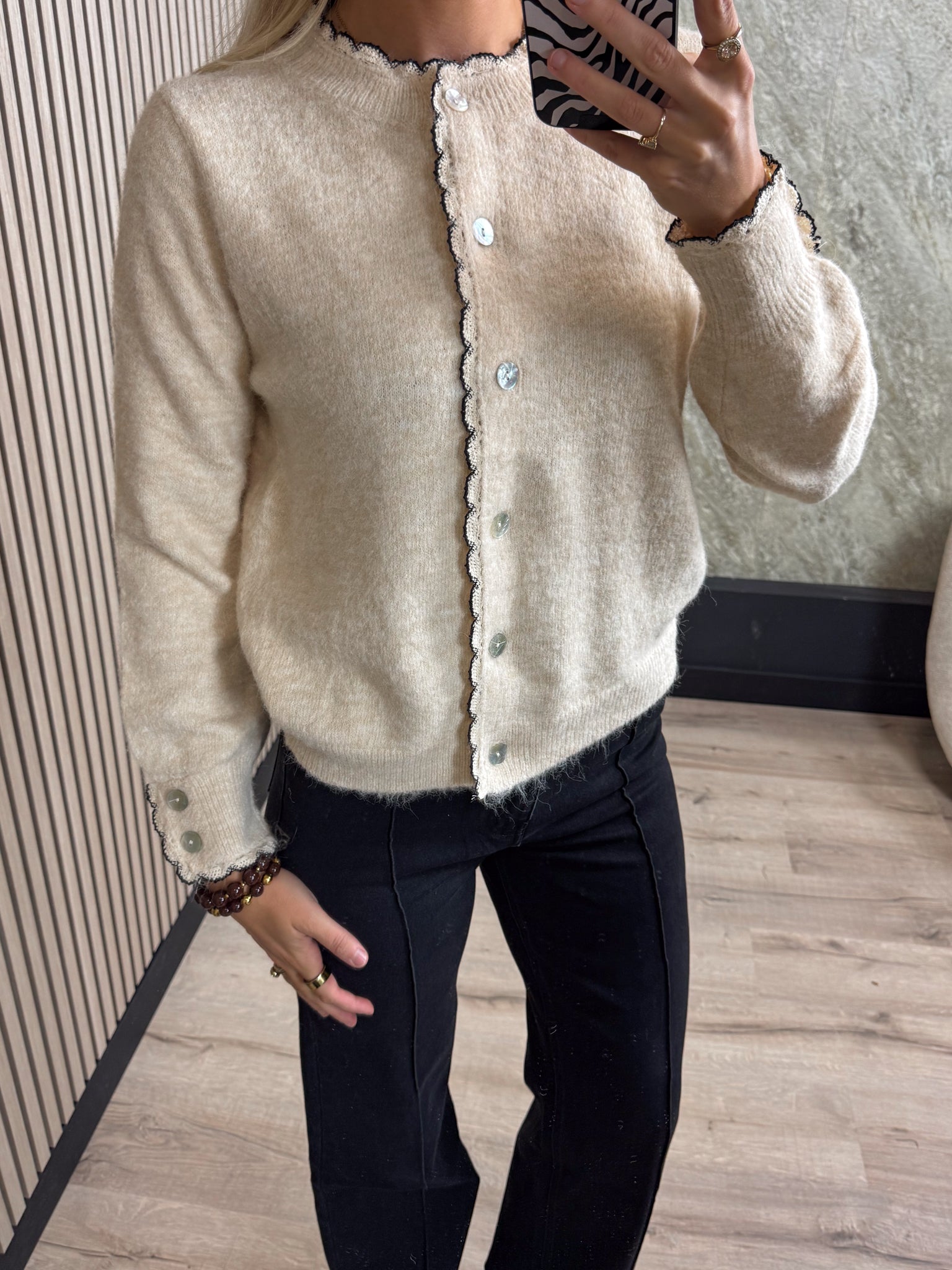 Dit vest is een echte eyecatcher. Het is gemaakt van een heerlijk zachte stof en heeft mooie details bij de hals, mouwen en knoopsluiting.