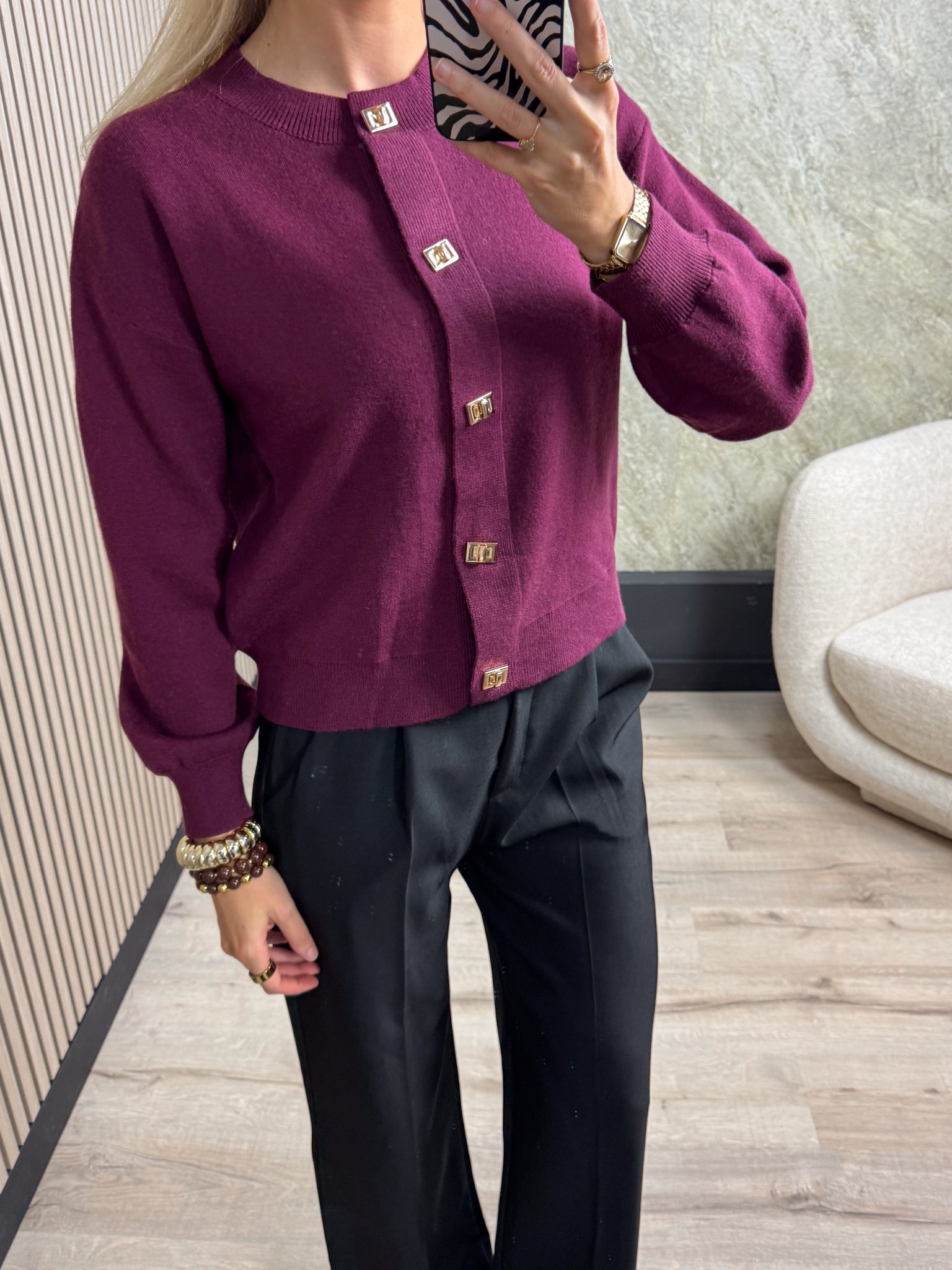 Dit vest is een echte eyecatcher! Gemaakt van een heerlijk zachte stof en afgewerkt met elegante gouden knopen voor een chique uitstraling.